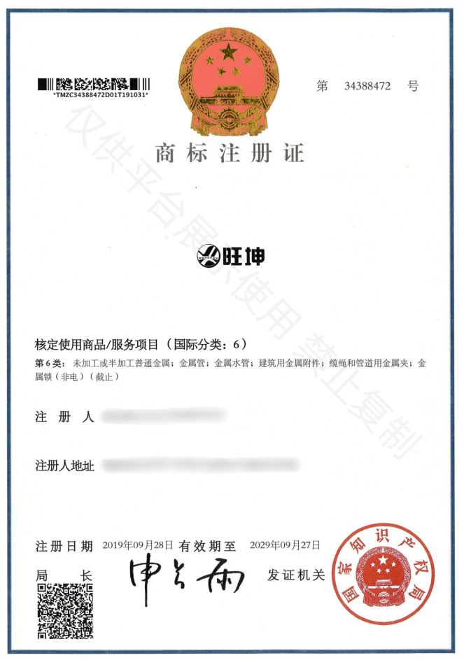 旺坤商標(biāo)注冊證