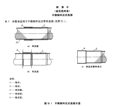 3.4 D 型承口連接:管件承口端部無延伸直段的卡壓連接。