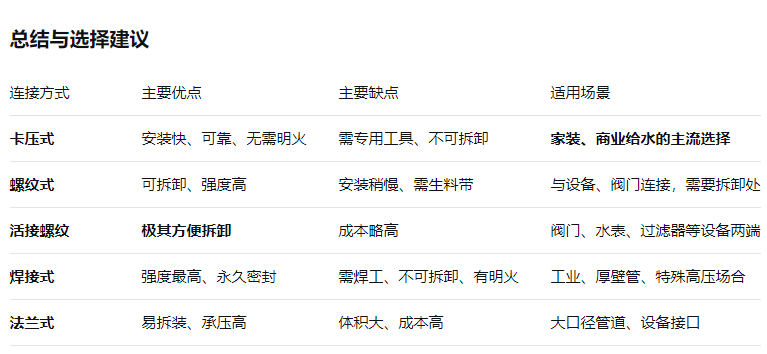 對于現(xiàn)代家庭不銹鋼水管系統(tǒng),“卡壓式為主,活接螺紋為輔” 是最佳組合。